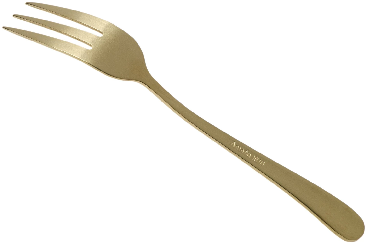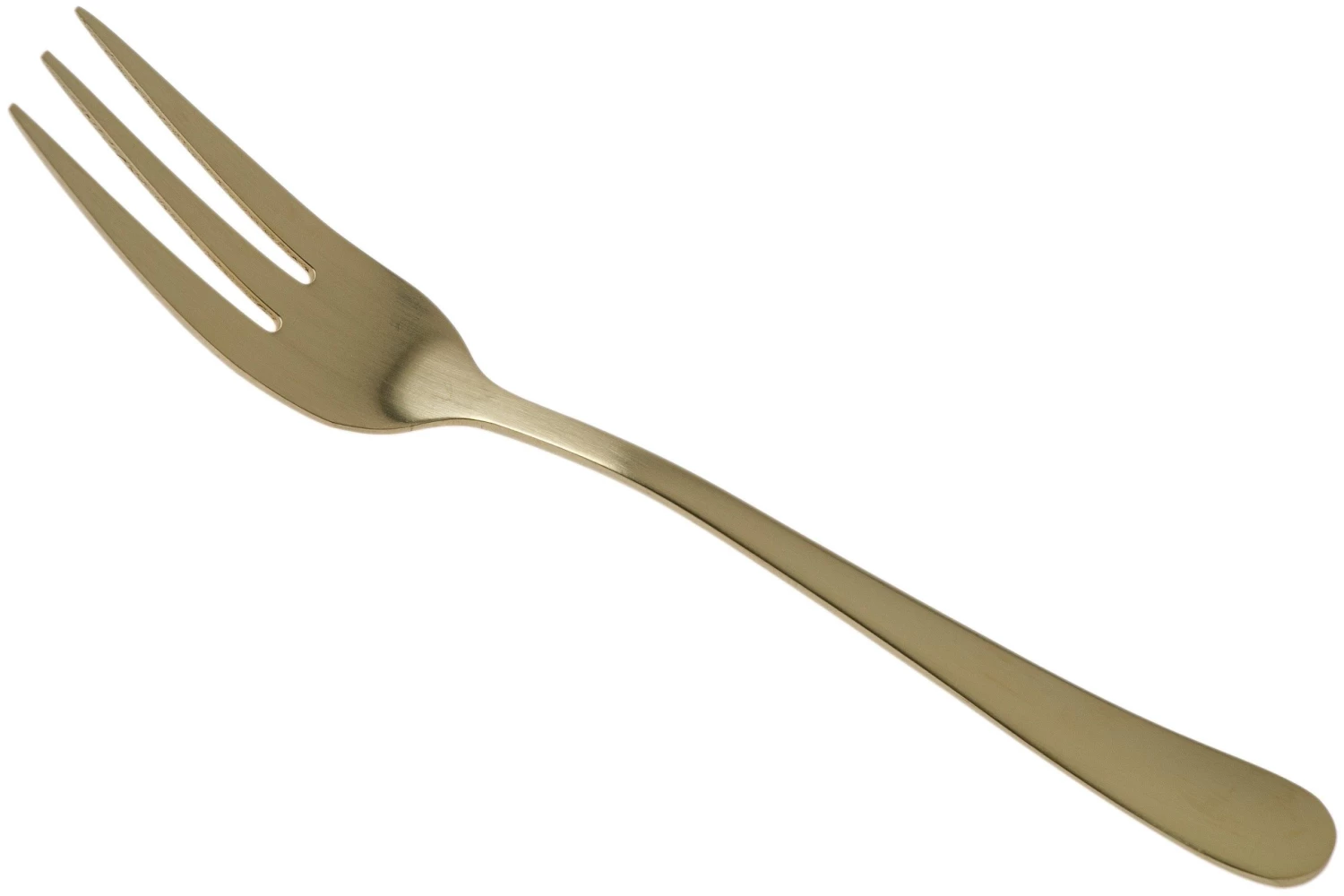 El color champán de estos tenedores de repostería Amefa Austin 1410 los hace parecer muy modernos. Están fabricados en acero inoxidable 18/0 y mejorados con un fino revestimiento de PVD de titanio. La longitud de estos tenedores de pastelería es de 14 cm.