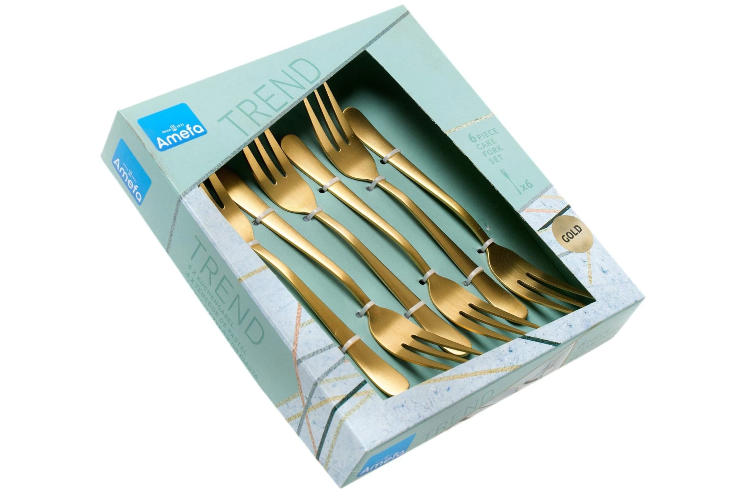 Amefa Austin 1410 Seis Tenedores De Pastelería, Oro Mate