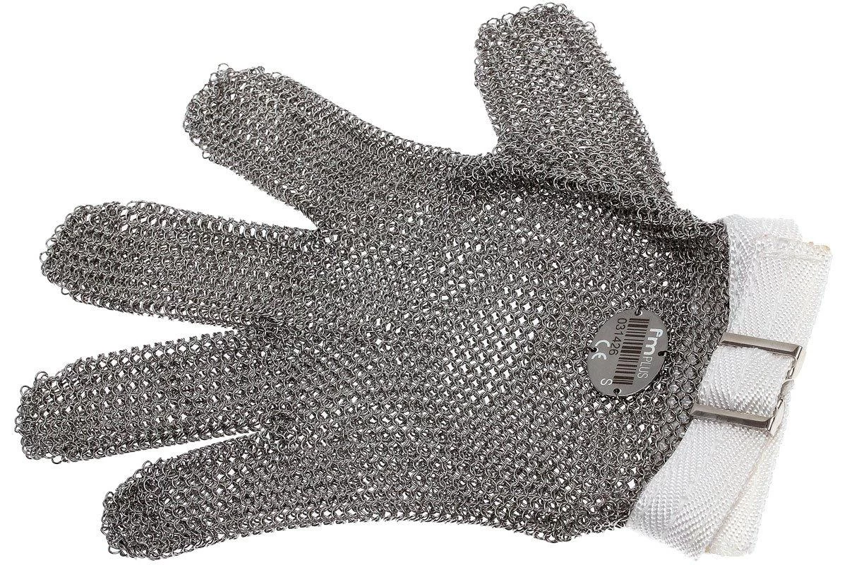 Este guante para ostras Niroflex reduce en gran medida el riesgo de lesiones al abrir las ostras. La estructura de los anillos de acero trenzado procede directamente de la cota de malla, pero obviamente es mucho más ligera y fina. Puedes ajustar la longitud de la banda sólida alrededor de la muñeca.