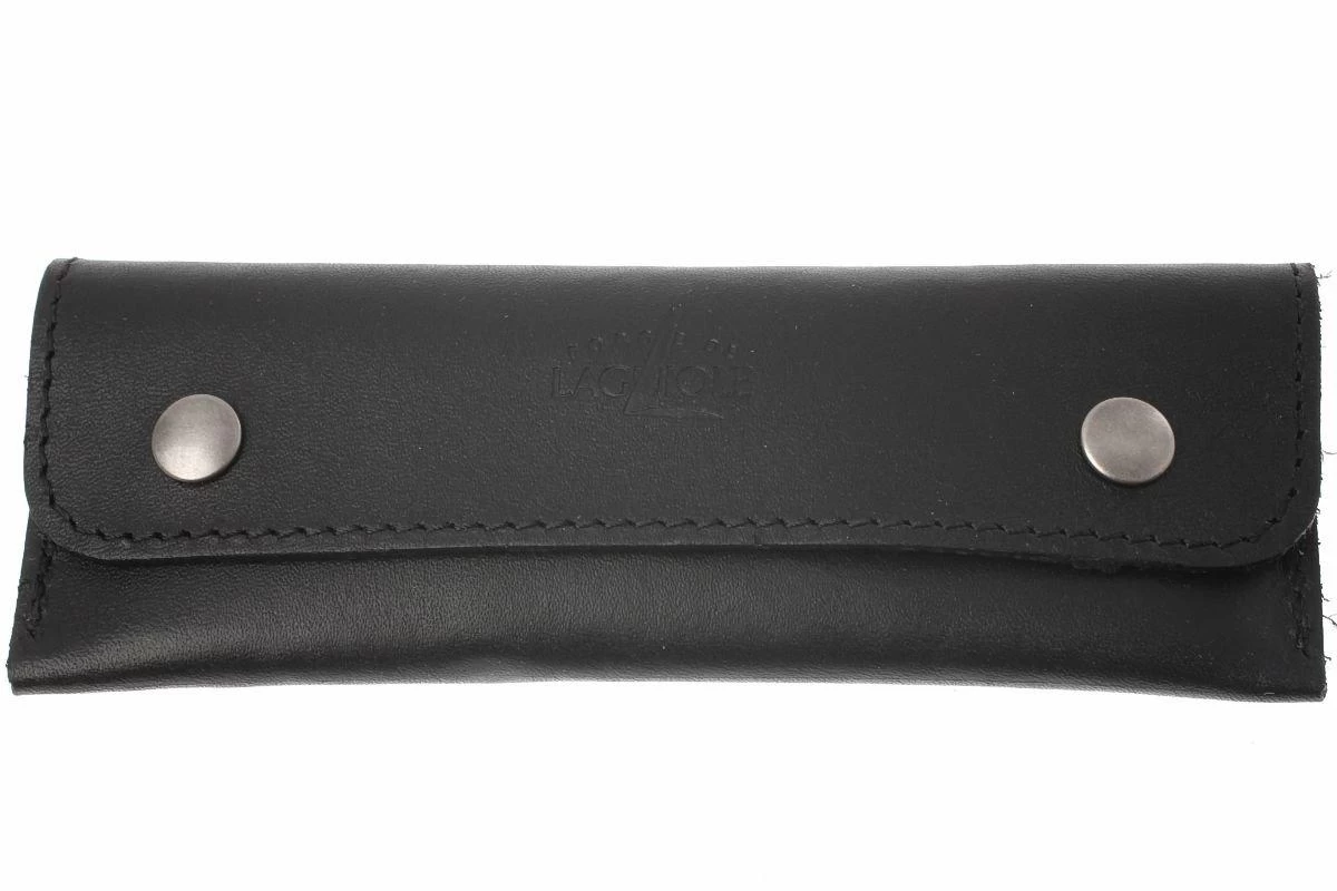 Esta bolsa de almacenamiento Forge de Laguiole es una funda de cuero compacta para tu sacacorchos de camarero Forge de Laguiole. Fabricada en cuero negro y realzado con botones de presión.