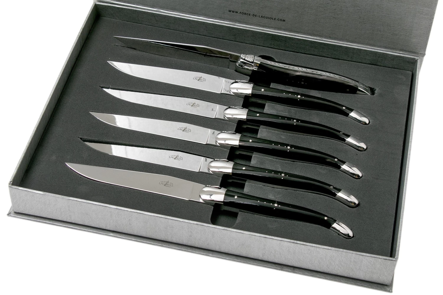 Forge Laguiole Set De 6 Juego De Cuchillos Para Carne, Cuerno Negro, T62MINBN