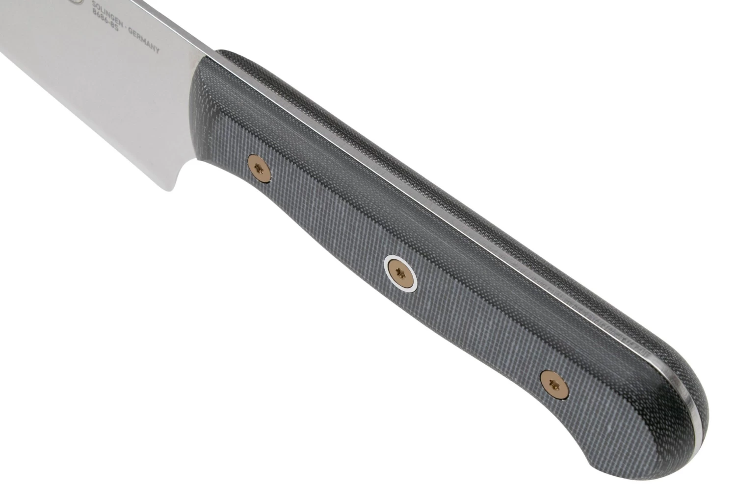 El cuchillo de chef Messermeister Custom es un cuchillo de cocina muy afilado y práctico. El cuchillo es lo suficientemente grande como para realizar casi todas las tareas de corte cotidianas en la cocina y lo suficientemente pequeño como para que sigas teniendo mucho control mientras cortas. Este cuchillo de chef es un todoterreno: ideal para cortar todo tipo de verduras, carne y pescado.