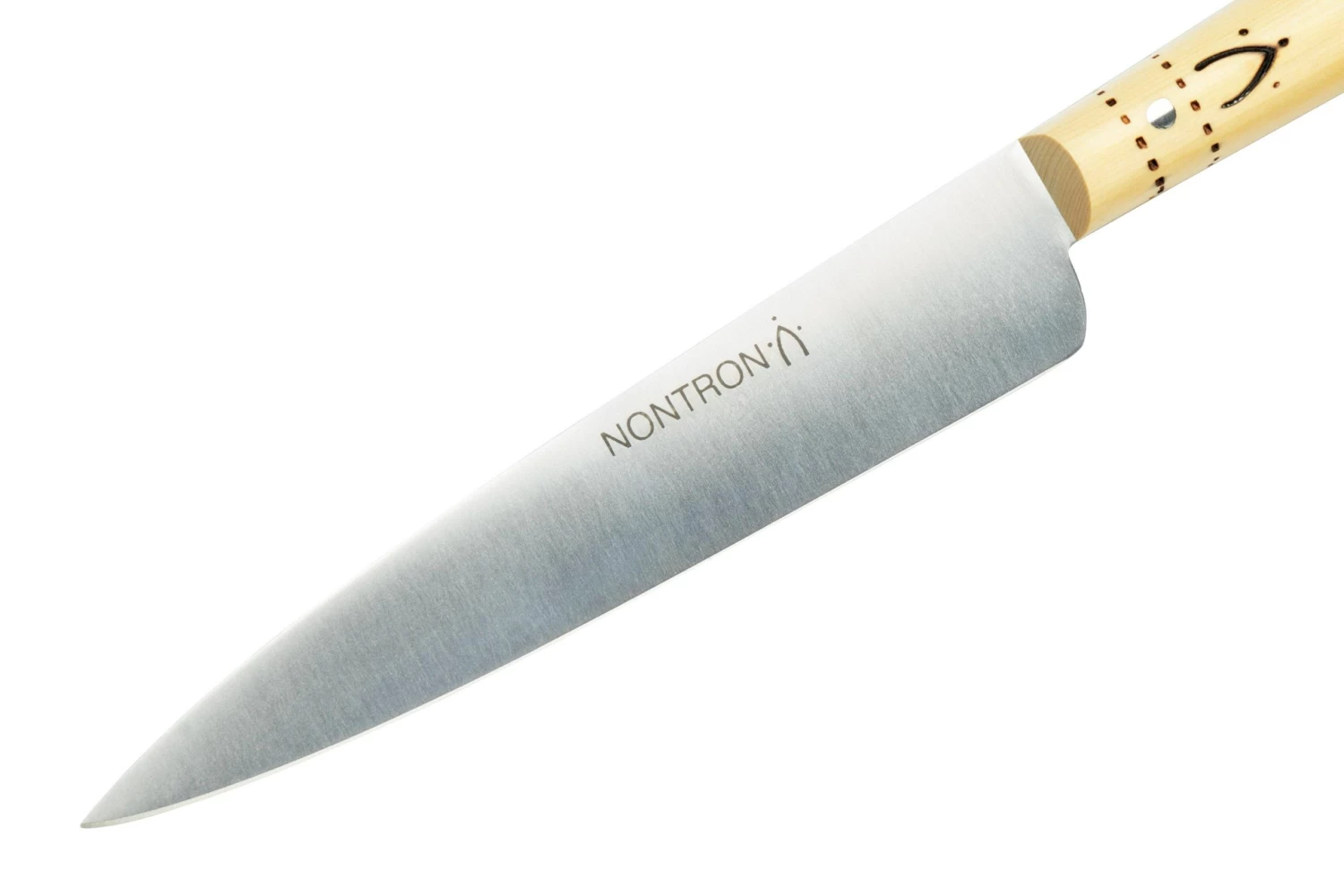 El cuchillo de cocina Nontron Traditional 10 cm es un hermoso cuchillo francés para pequeños trabajos en la cocina. Todo en este cuchillo rezuma tradición. Desde las hojas minimalistas hasta los mangos redondos con grabados clásicos.