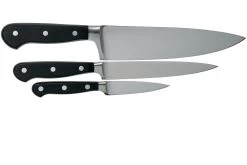 El Juego de 3 cuchillos de cocina Nontron Traditional es un bonito juego de cuchillos franceses compuesto por tres cuchillos de cocina. Estos cuchillos sólo se diferencian en la longitud: 17, 20 y 22 cm. Hechos para todos los pequeños trabajos en y alrededor de la cocina. Todo en estos cuchillos rezuma tradición. Desde las hojas minimalistas hasta los mangos redondos con grabados clásicos.