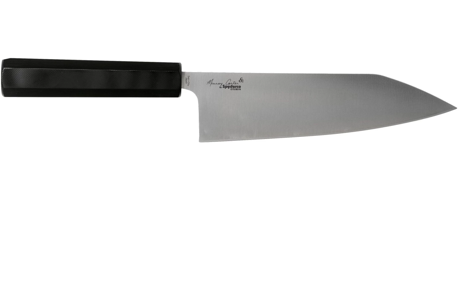 El Boncho Wakitta Bunka Spyderco de la Colección Murray Carter es un cuchillo multifuncional, perfecto para cortar carne, pescado y verduras. Bunka Bocho significa «cuchillo cultural» por su función en la preparación de platos tradicionales japoneses. Al igual que el cuchillo santoku, el Bunka Bocho también tiene una punta cónica.