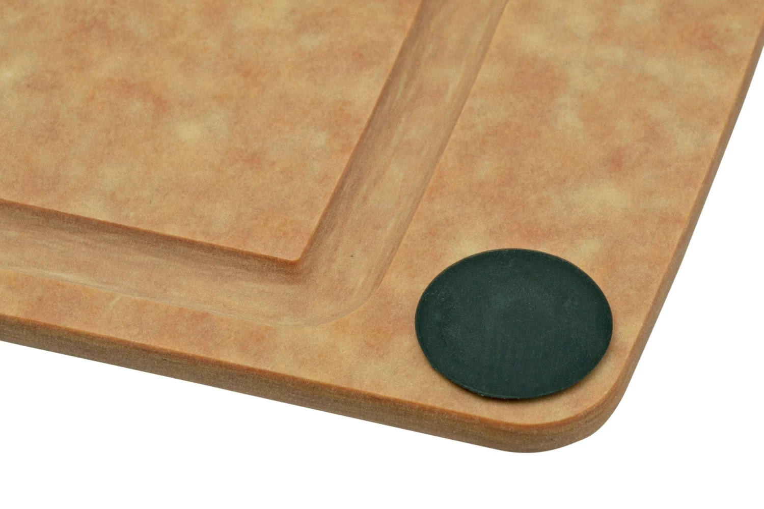 La Victorinox All-in-One 7.4125 es una tabla de cortar con unas dimensiones de 29 x 23 cm. La tabla de cortar es de Richlite marrón. Un material que consiste en una combinación de 65% de pulpa de madera con certificación FSC y 35% de resina fenólica. El resultado es una fina tabla de cortar con una superficie lisa, no porosa, resistente al calor, sin BPA e higiénica. La madera es lo suficientemente suave como para no dañar el filo del cuchillo y, al mismo tiempo, lo bastante dura como para evitar arañazos profundos,