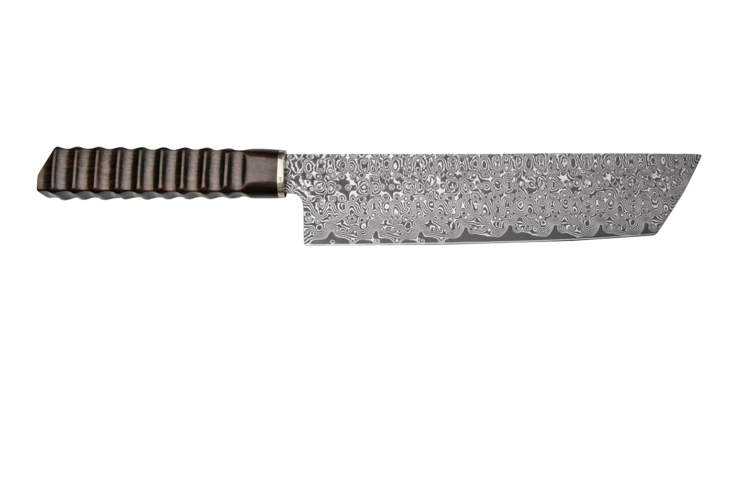 El Xin Cutlery XinCraft XC129 nakiri es un cuchillo de cocina de estilo japonés extraordinariamente elegante. El nakiri se encuentra en casi todas las cocinas japonesas. La hoja alta y cuadrada es ideal para cortar rápidamente verduras, frutas y hierbas. La hoja alta te permite guiar la hoja con seguridad a lo largo de tus nudillos mientras cortas. Es, sin duda, el cuchillo que necesitas para cortar zanahorias, pepinos, coles y cualquier otro tipo de vegetales muy finos.