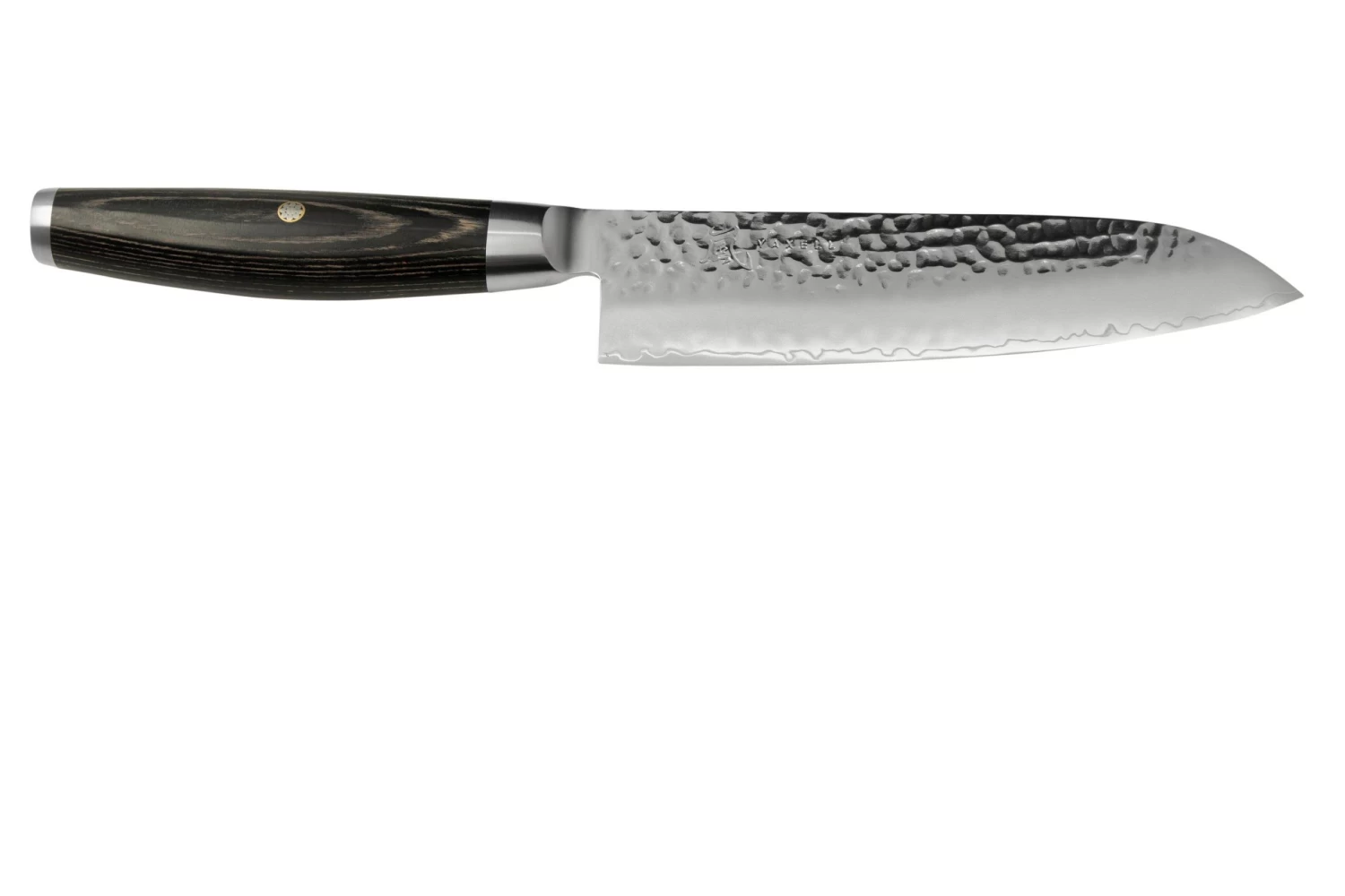 El Yaxell Ran santoku 16,5 cm es un práctico y elegante cuchillo de cocina japonés. Un santoku es la versión japonesa del cuchillo de chef. La hoja relativamente pequeña es perfecta para cortar finamente verduras, carne, pescado, cebolla, ajo y, por supuesto, diferentes tipos de hierbas.