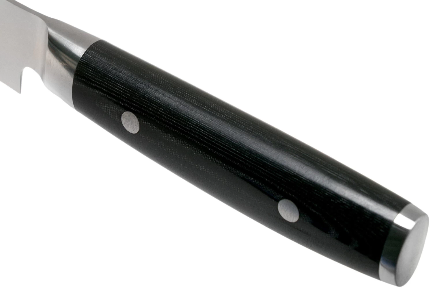 El cuchillo para trinchar Ran de Yaxell es un cuchillo para trinchar tradicional japonés con un gran diseño. La hoja de 18 cm de longitud permite realizar cortes largos. Las rebanadas no se pegan fácilmente a la hoja. Así se pueden cortar fácilmente rodajas finas sin romper la carne. La punta afilada es perfecta para tareas pequeñas y delicadas como la eliminación de tendones o grasa.